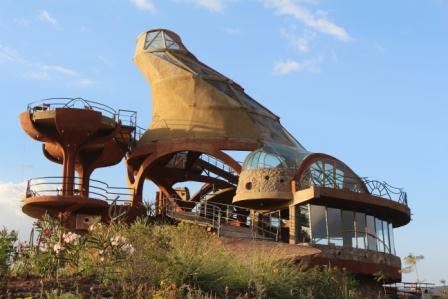 in dit futuristisch restaurant genoten we het afscheidsdiner | de haarspeldbochten op weg naar het restaurant | uitzicht van het restaurant |