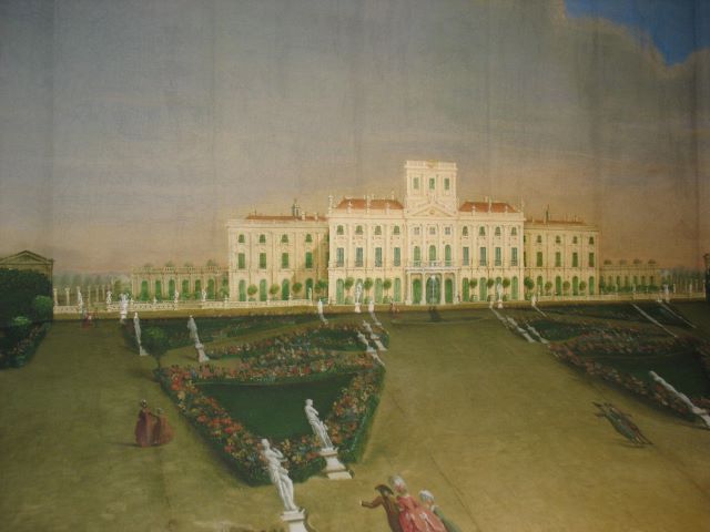 Olieverfschilderij Eszterházy kasteel en tuin in Fertöd van Bartolomeo Goetano Pesci (1783)