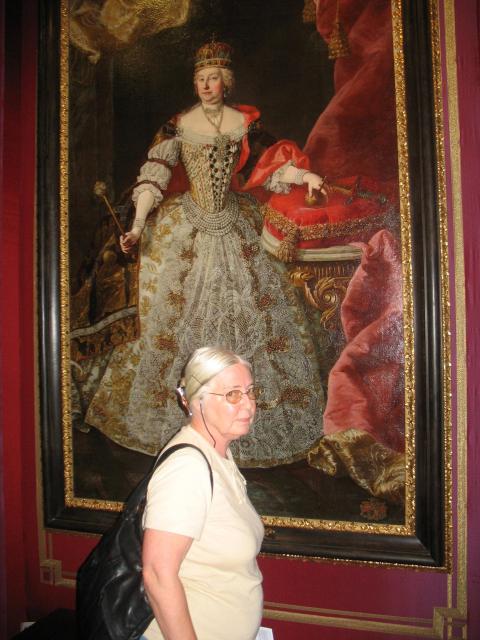 Schilderij van Maria Theresia als koning van Hongarije. In haar handen houdt ze de scepter en de appel, op haar hoofd heeft ze de koninklijke St. Stephanskroon. Maria Theresia Walburga Amalia