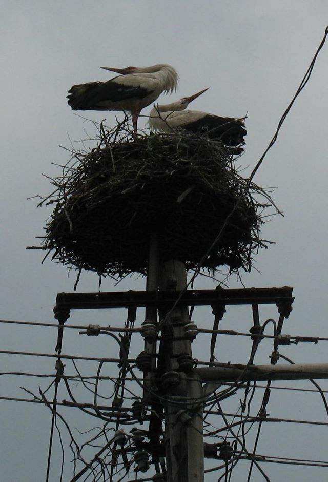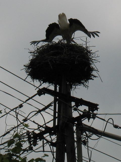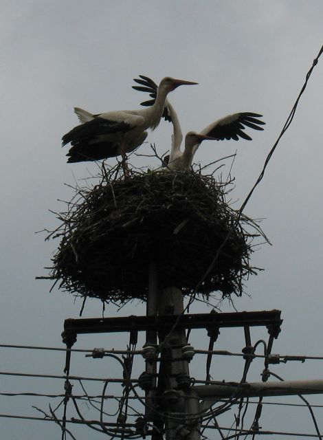 Liefdesspel van een ooievaarsechtpaar met spectaculair snavelgeklepper