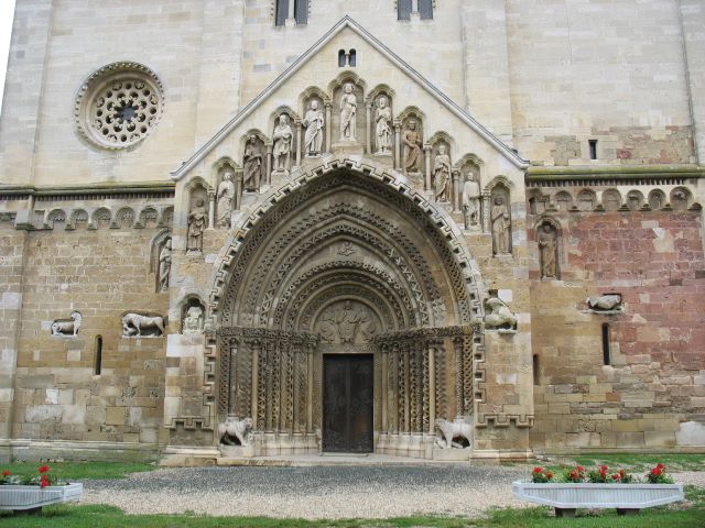 In de nissen rond het hoofdportaal zien we Christus en de 12 apostelen. |
