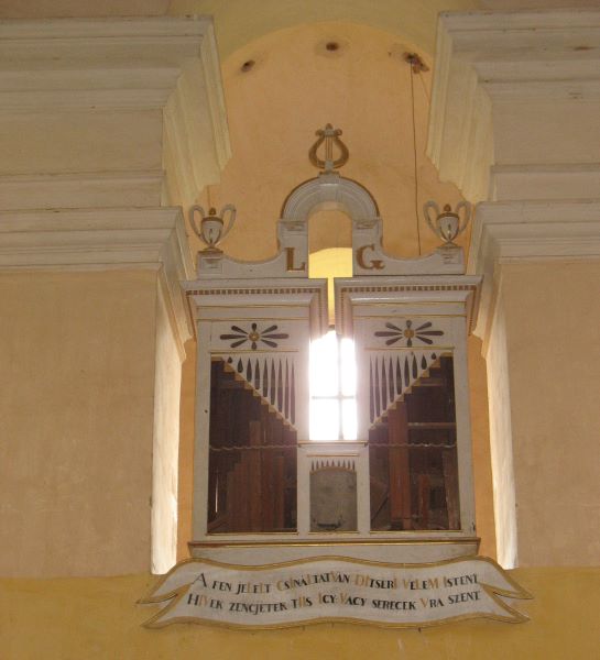 Het orgel werd gebouwd in 1833, de som van de Romeinse cijfers die rood zijn gekleurd in de Hongaarse tekst.