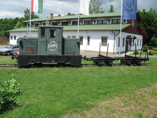 Het forest houttreintje bij het (gesloten) museum van het Ecoturism centre in Pöböly