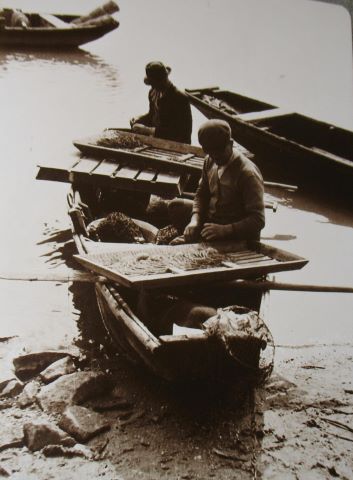 vissersschepen van de Donau, van Paks tot Mohács, met de karakteristieke hoge boeg |