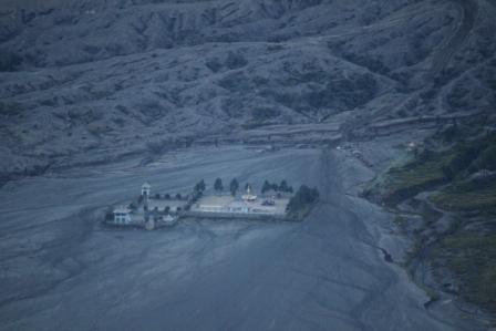 | het klooster aan de voet van de Bromo, nu van dichtbij | Dan weer terug naar de jeep, welke was het ook al weer? |