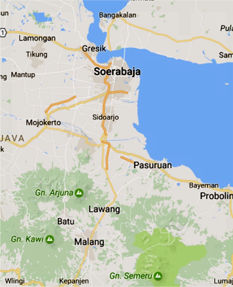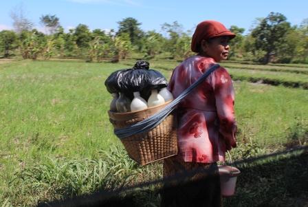 Daarna was het hoogste tijd om de reis naar Soerabaja te maken. Onderweg passeerden we een "medicijnvrouw" met een mand met flessen op haar rug. Onze gids vertelde dat In de flessen een kruidendrank zat gemaakt in Solo, die o.a. gele gember, rijst, kaneel en kruidnagel bevatte. Deze drank (djamu) werd gebruikt bij bestrijding van verschillende kwalen. De vrouw liep met de drank dagelijks van Solo naar verschillende dorpen en had het alleenrecht om de djamu te verkopen.