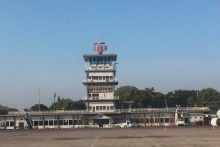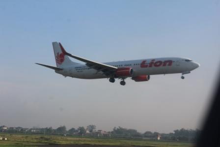 | maar voor de startbaan moeten we nog wachten op 3 Lion toestellen | dan vertrekken we en nemen we afscheid van de Javaanse rijstvelden | en laten we Java achter ons, op weg naar Sulawesi |