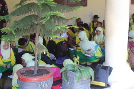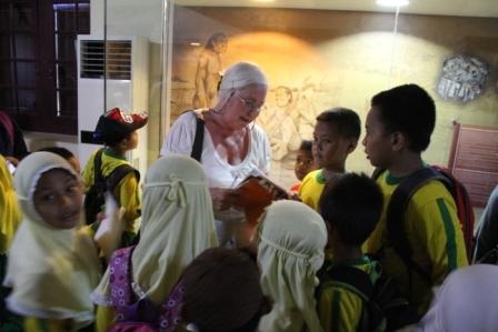 | centraal in Fort Rotterdam staat het Speelman's huis | we werden opgewacht door hordes schoolkinderen die Marijke belegerden en zoveel lawaai maakten dat we ons bezoek al snel beëindigden | |