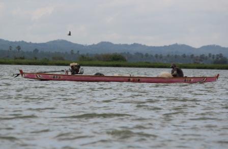 gehaald) dan over de rivier terug naar het dorp waarbij we