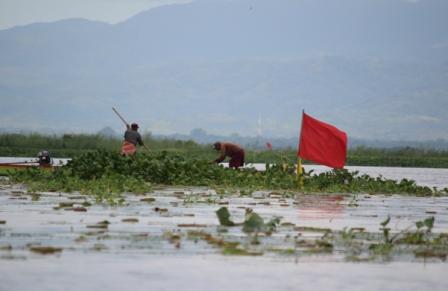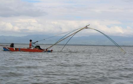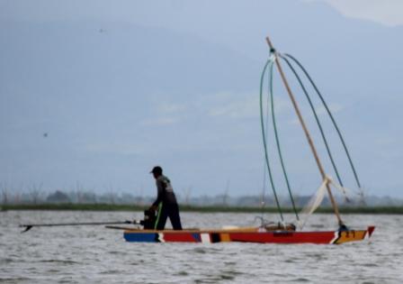 Op het meer waren veel vissers actief met staande netten, bamboe