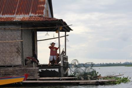 de drijvende huizen bezochten we een vissersfamilie, vader,