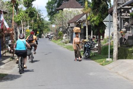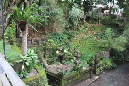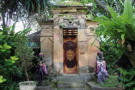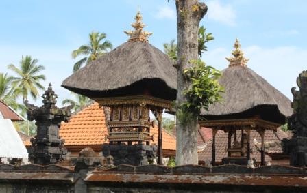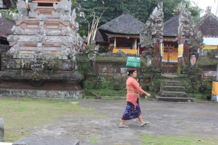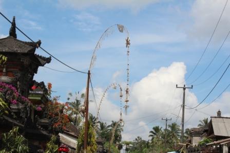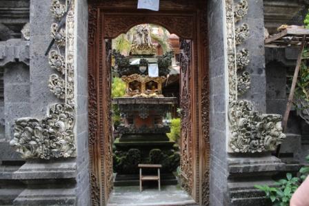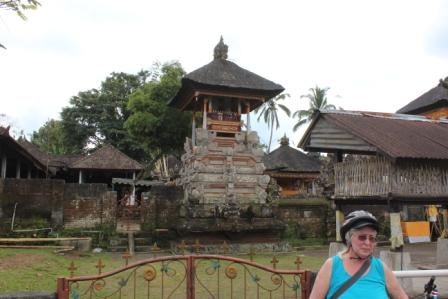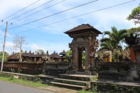 | langs een dorpje met rieten daken verscholen in het bos | we stopten voor een Hindoe tempel, Desa pakraman pisang kaja in het Taro dorp Gianyar Bali. helaas mochten we niet naar binnen | |