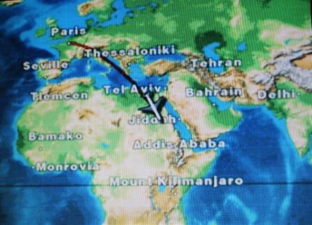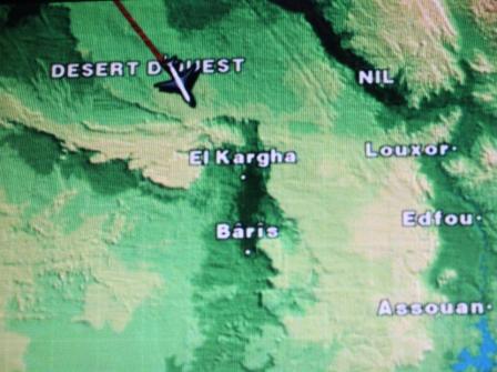 | route boven Afrika | We vlogen parallel aan de Nijl met bekende plaatsen als Luxor, Edfou en Aswan | rond 6 uur kwam de zon op maar door de bewolking was geen land in zicht |