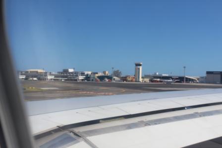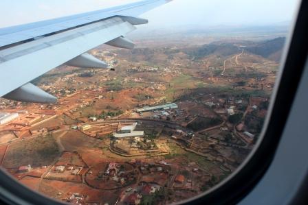 | we naderen Antananarivo | vlegelkleppen omhoog | geland op Antananarivo airport, onze reis door Madagaskar kan beginnen |