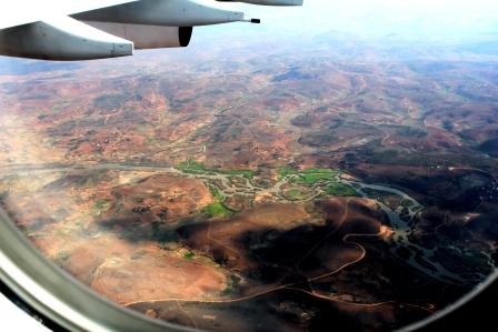 | grillig gevormde rivierpatronen in Ethiopië | we vliegen over Gondar | en over Addis Abeba |