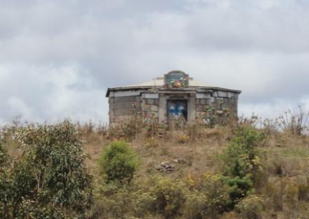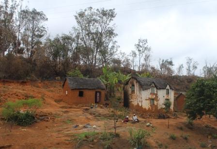 lemen huisjes met stro- of golfplaten daken. In de dalen