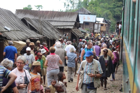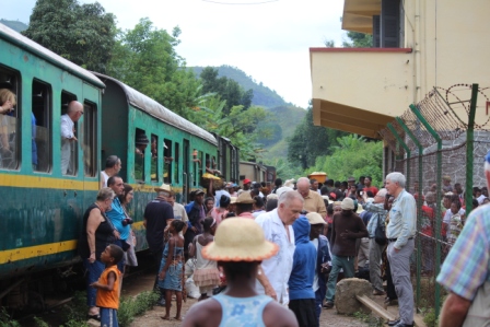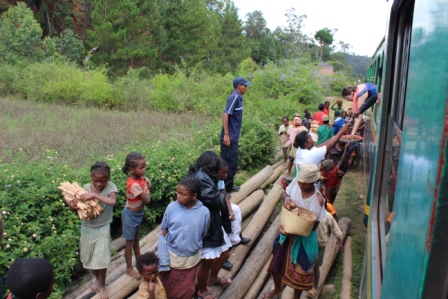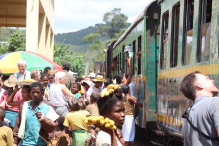 namen we de trein naar Manakara. De treIn zou om 8 uur