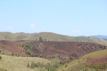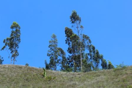 | rivier met een "koeieneilandje" | de eucalyptusboom is uit Australië ingevoerd en dus niet inheems | de omgeving wordt steeds gevarieerder met kale bergen |
