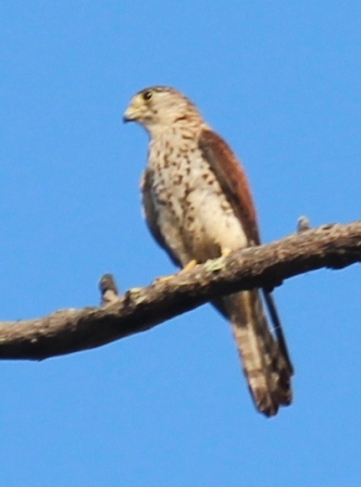 | uit de verte leken het vissers, het was echter een openbare toiletgang | dan maar beter naar de vogels kijken - een etende witborstraaf | en de Madagaskar torenvalk | |