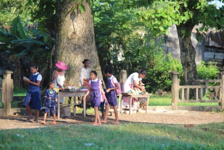 | raffiavlechten | een van de schoolklassen | terug op het kanaal |