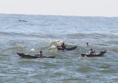 | verderop nog een vissersdorpje met drogende fuiken | tijd voor de lunch, we legden aan bij een smalle duinstrook | met de stille oceaan op zo'n 300 meter |