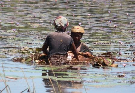 bevaarbaar per prauw (pirogue) doordat ze zijn overwoekerd met