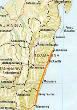 tussen Vatomandry en Mahanoro en ten zuiden van Mananjary zijn enkel
