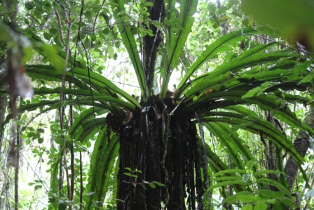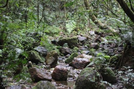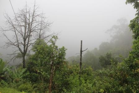 | het Ranomafana nationaal park | in het park is het flink mistig of is dit lage bewolking? | dat worden dus wazige vogeltjes |