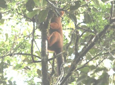| even later verlaten we het pad en wringen ons tussen de struiken en bomen door, er is een groepje bruine lemuren gevonden | ||