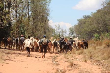 het rustig tot een groepje Bara's hun kudde Zebu's langs