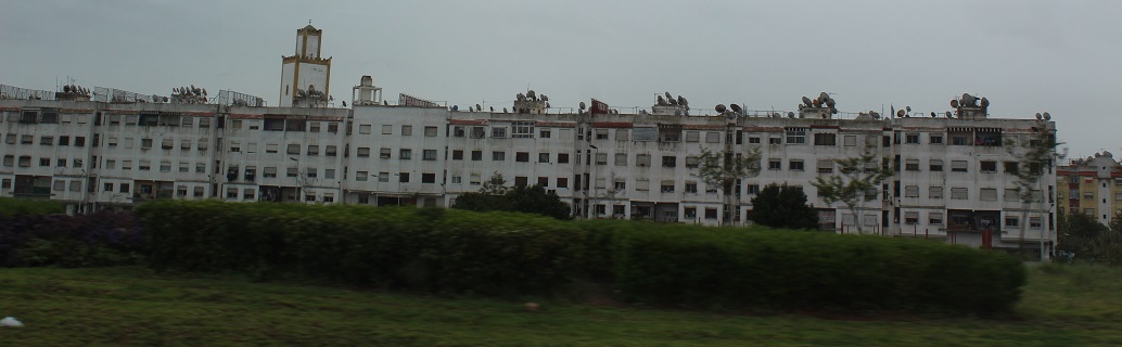 de witte huizen van Casablanca zijn rijkelijk voorzien van schotelantennes |