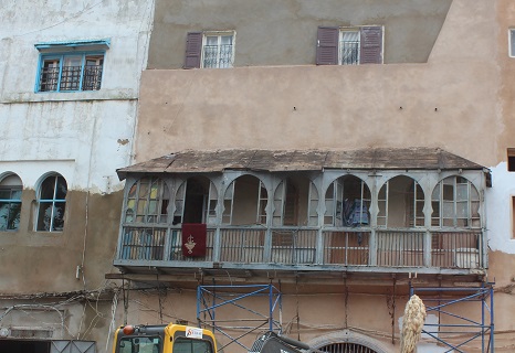 | huis met een gammel maar wel karakteristiek balkon | dan via de kustweg achter de citadel op weg naar de vissershaven |