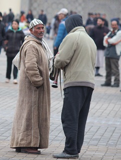 | dan naar de markt om wat etenswaren in te slaan | de slangenbezweerder maakt zich klaar | daarna naar onze riad, Palais Didi, in de medina via dit smalle straatje |