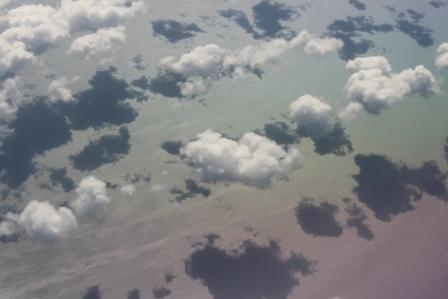 Oceaan. Het was zwaar bewolkt, dus van de wereld onder ons hebben