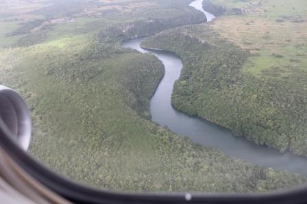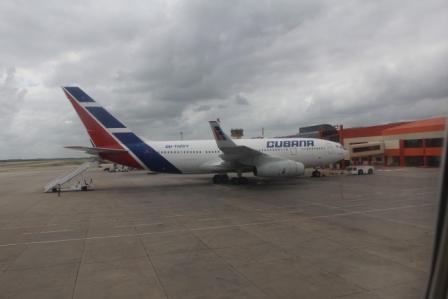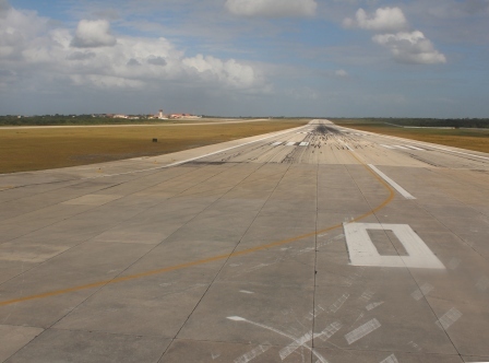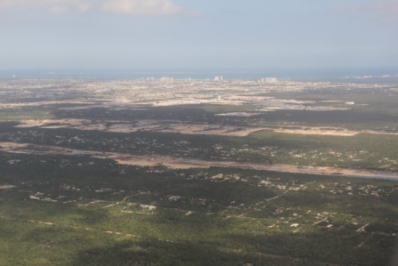 | Daarna de startbaan weer op, op weg naar Cancún | De stad Cancún zagen we al van ver liggen |