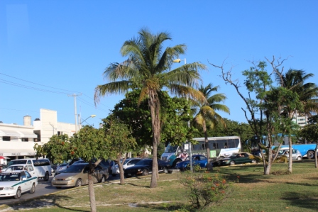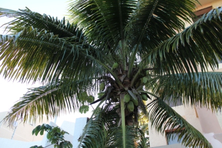 | Veel auto's maar ook veel groen | Je kan de kokosnoten zien hangen | Tenslotte onze kamer |