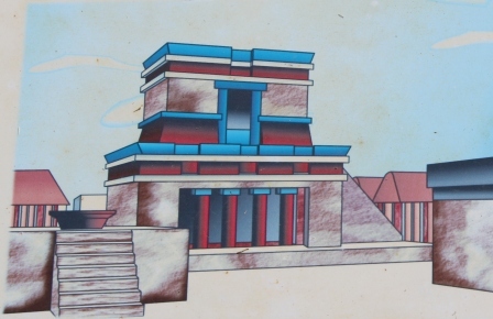 dit gebouw er gekleurd uit in de tijd van de Maya's |