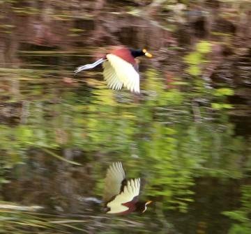 | Tropische meerkoeten, Amerikaanse Jacana (Jacana spinosa) lopend en vliegend | De zilverreiger in bevallige vlucht | |