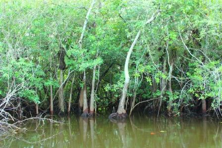 Omdat deze plek beschermd is, leven er ook veel wilde dieren in het gebied. Zeven soorten apen slingeren er door het bos waarvan we er één hebben gezien en de brulapen hebben gehoord