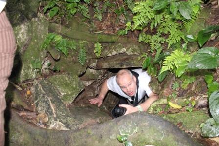 | Door een gat in de grond kom je in de Maya wereld | want veel Maya-ruines zijn nog niet uitgegraven | en weer verder door het oerwoud |