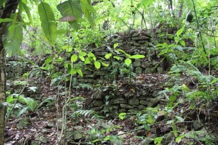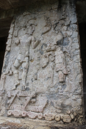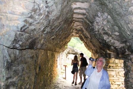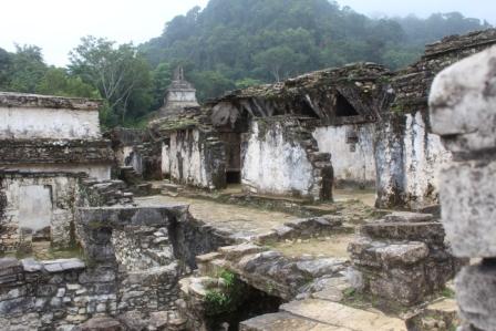 | De ruimten in de Maya gebouwen werden veel gebouwd met muren die schuin naar binnen liepen. Dit deden ze om een bredere ruimte te kunnen overbruggen zonder dat de zaak zou instorten. Plafonds had je in die tijd dus niet | De resten van diverse kamers in het paleis met stromend water (een riviertje werd afgetapt en lieten ze onder het paleis doorlopen) | |