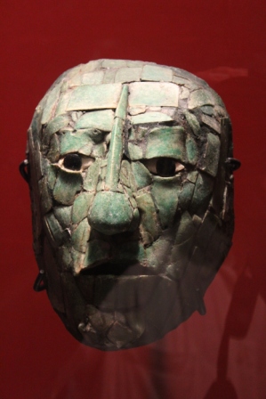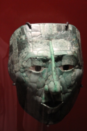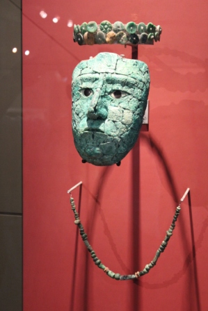 | Maya schrift werkt met groepen symbolen in tabletten | Dodenmaskers ingelegd met jade | ||