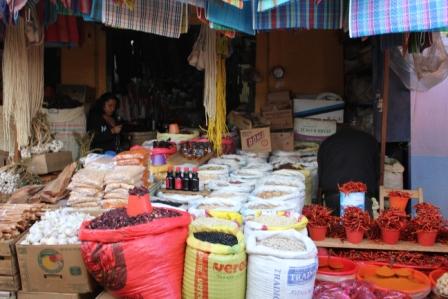 | De warenmarkt is één kleurig spektakel | ||