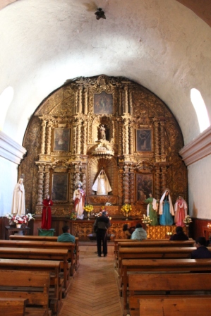 de Plaza 31 de Marzo, Ook de zestiende-eeuwse kerk Santo Domingo is met haar indrukwekkende voorgevel een hoogtepunt, vooral in de avond, wanneer ze prachtig wordt verlicht. Het interieur is rijk versierd met gouden elementen. |