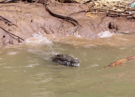 | Heerlijk in het zonnetje opwarmen | Lekker stel tanden | Een gier probeert de krokodil in de staart te pikken |