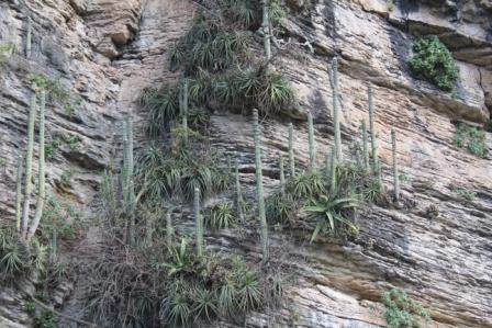 | Begin van de Canyon el Sumidero | Veel begroeiing, waaronder deze prachtige cactussen tegen de rotswand | |