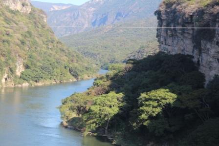 | Steeds weer kwamen we de Rio Grijalva tegen, na gisteren een oude bekende | prachtige vergezichten met de hoogste bergen in de nevel | |