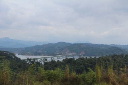 | De fotostop bij het stuwmeer in de Rio Grijalva | Even later reden we over deze brug | |