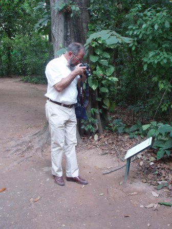 | Ons groepje onderzoekt het Olmeker hunnebed | We kwamen in het beeldenbos wat oude bekenden tegen, neusbeertjes en bladsnijdermieren | |