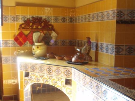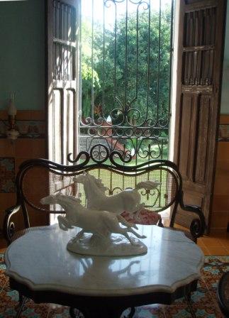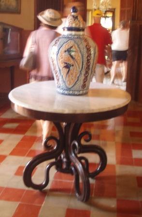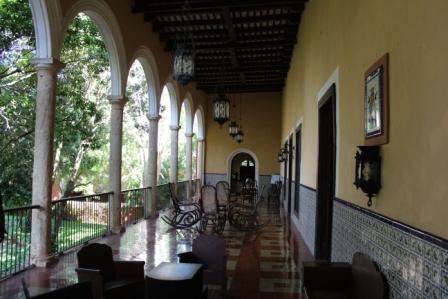 | de balustrade met schommelstoelen | de keuken is nooit gebruikt omdat de Maya's op de plantage het eten voor de Don en Donna klaar maakten in hun huisjes | |